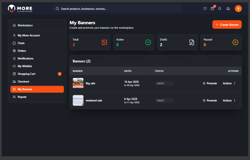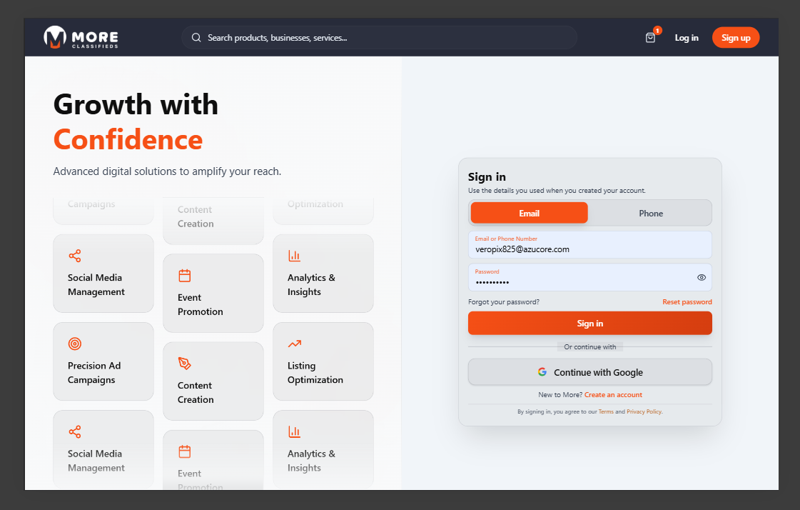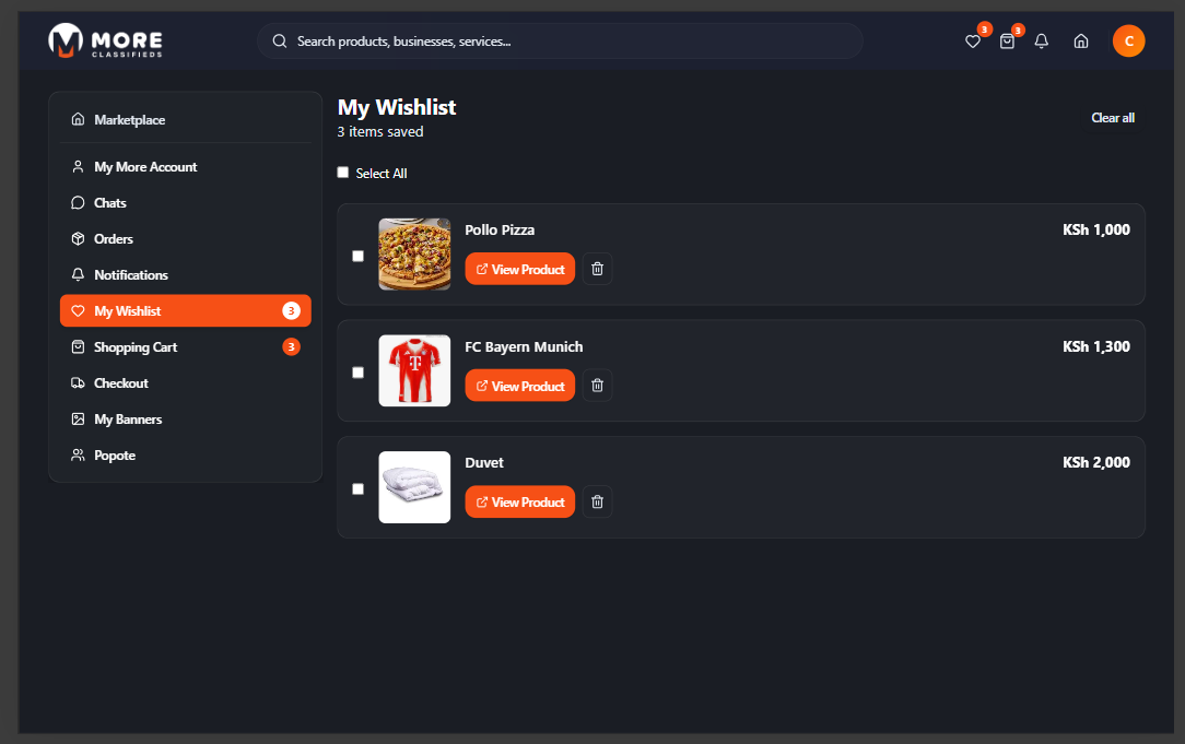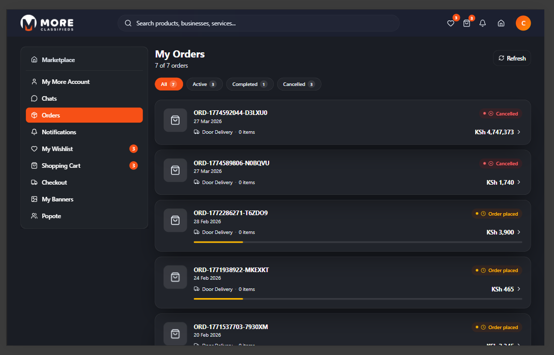 More Classifieds is Kenya's digital marketplace connecting buyers with thousands of verified businesses and sellers across retail, services, real estate, automotive, food, and more. As a buyer, you can browse products and services, place orders, save items to your wishlist, chat directly with sellers, and promote your own listings through banners.