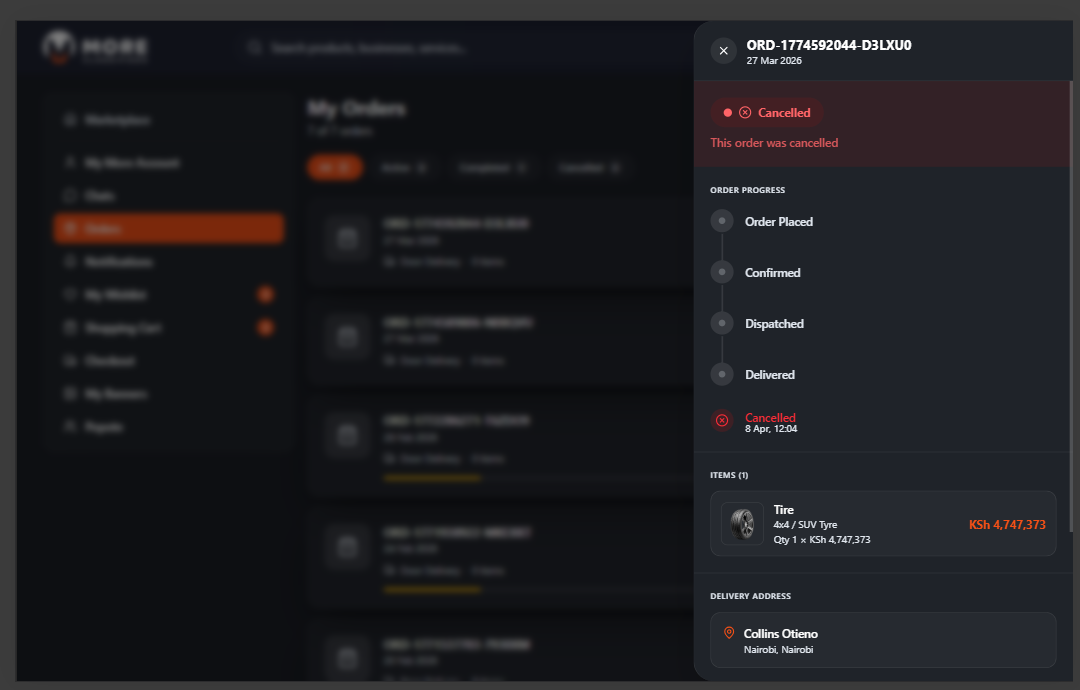 - Payment — All orders are paid on delivery. You settle the amount in cash (or via M-Pesa) directly with the seller or courier when your order arrives.